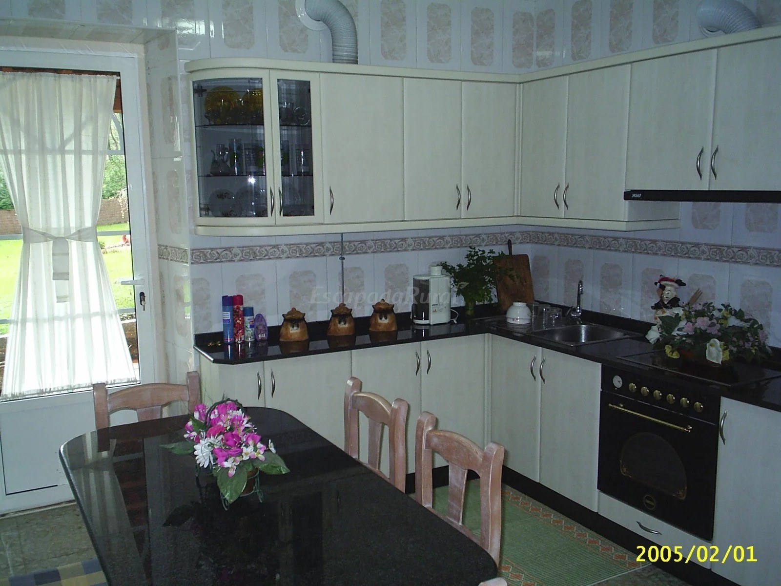 Cocina equipada con electrodomésticos y menaje